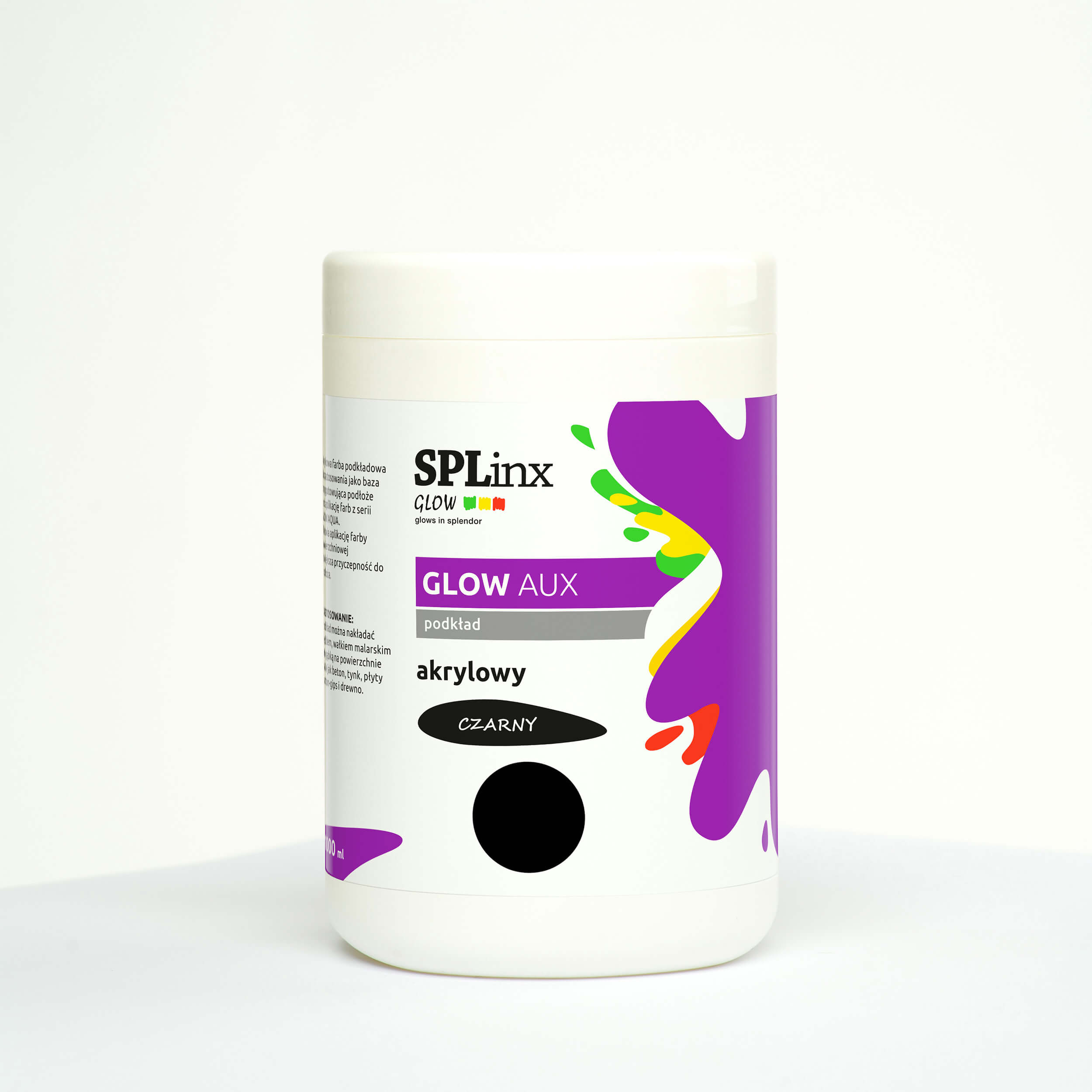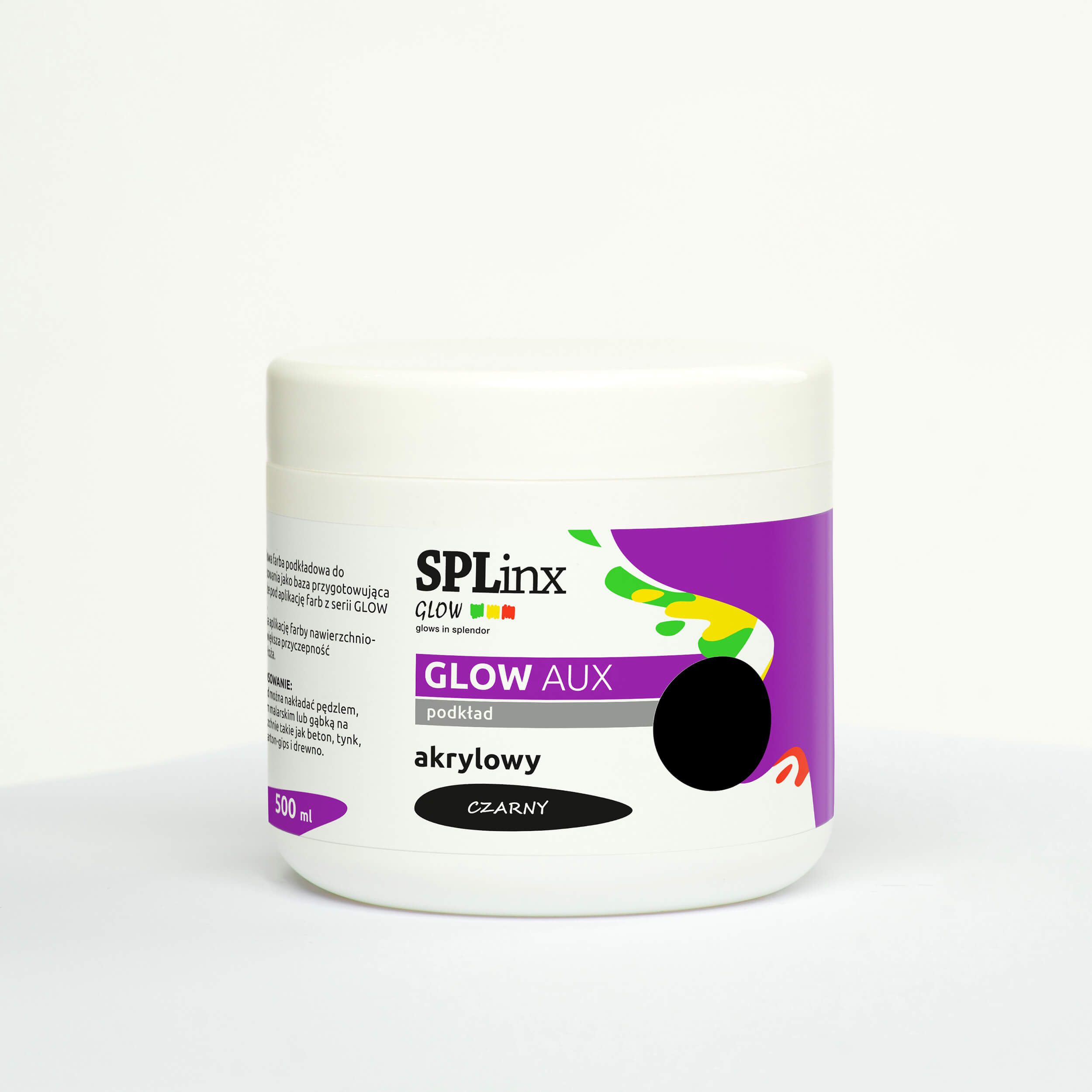 A high-quality, black primer for metallic acrylic paints from the GLOW AQUA series. Suitable for use on a variety of surfaces, including concrete, plaster, drywall, and wood. Available in 500 ml and 1 l containers.