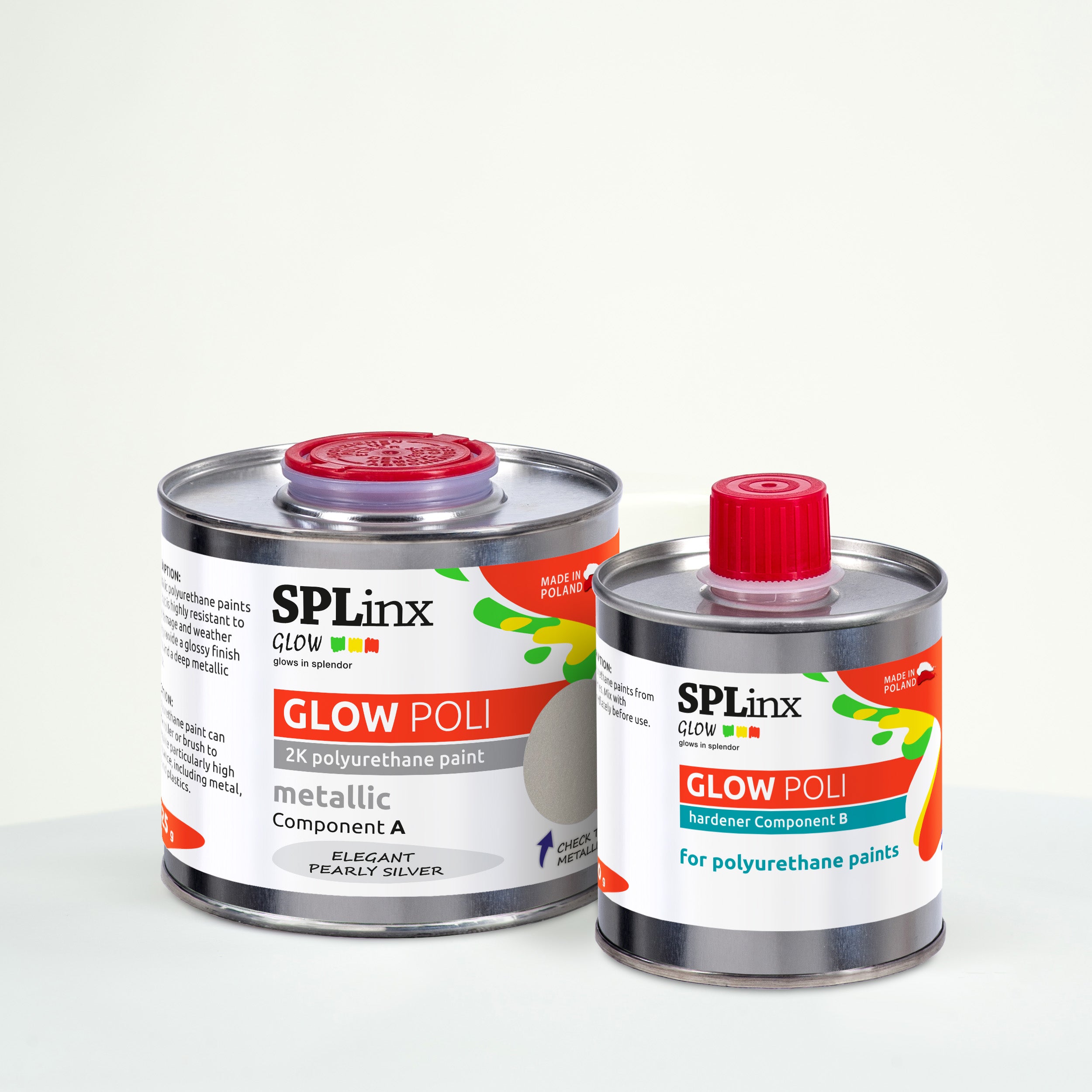 GLOW POLI metallic polyurethane paints are an excellent choice for DIY projects, interior decoration, furniture renovation and finishing premium spaces. Thanks to their metallic pigments, surfaces gain an elegant, glossy appearance. These paints are frequently used in construction, industry, scenography, and by fine artists and restoration specialists. Use them also in your DIY projects or for painting unique decorative elements.