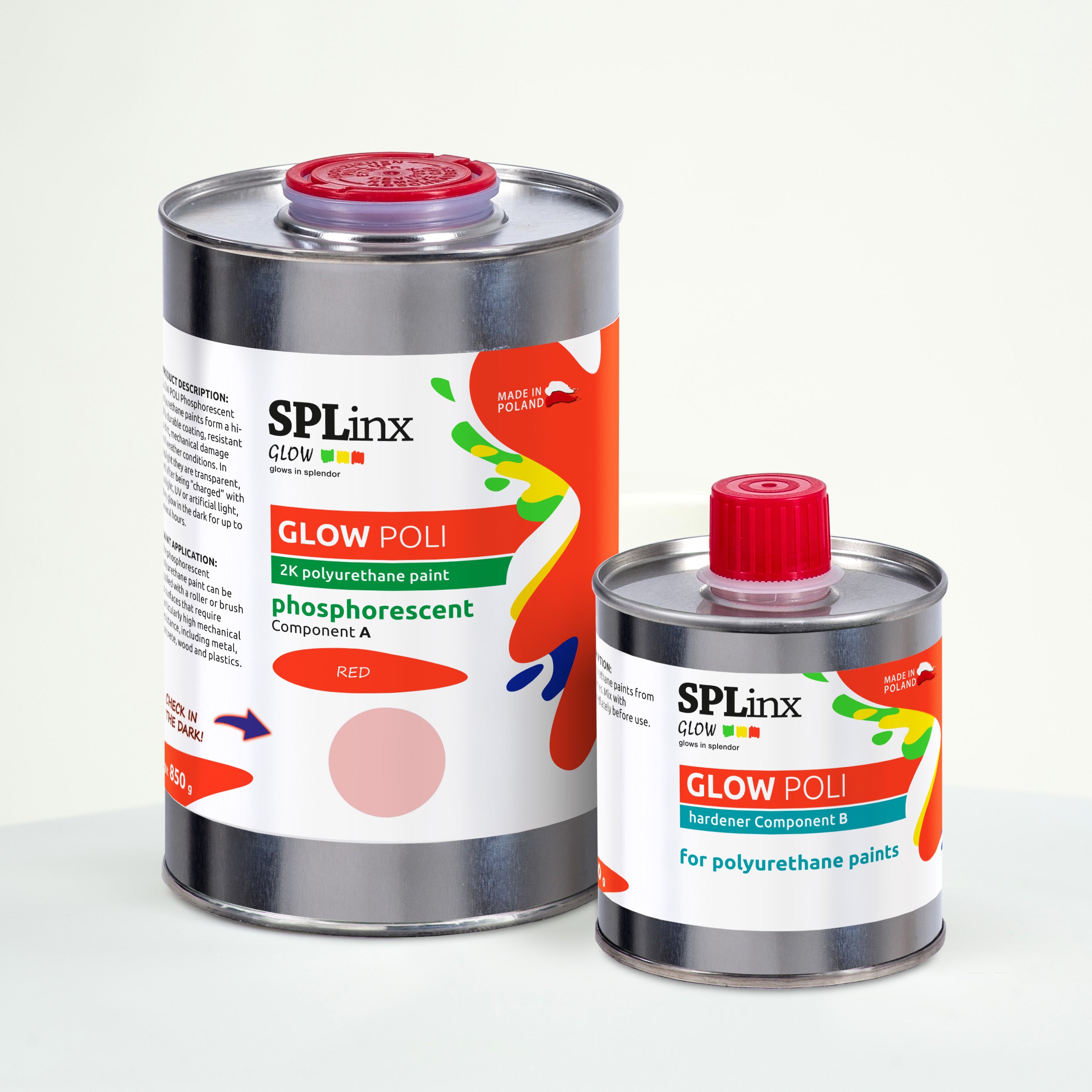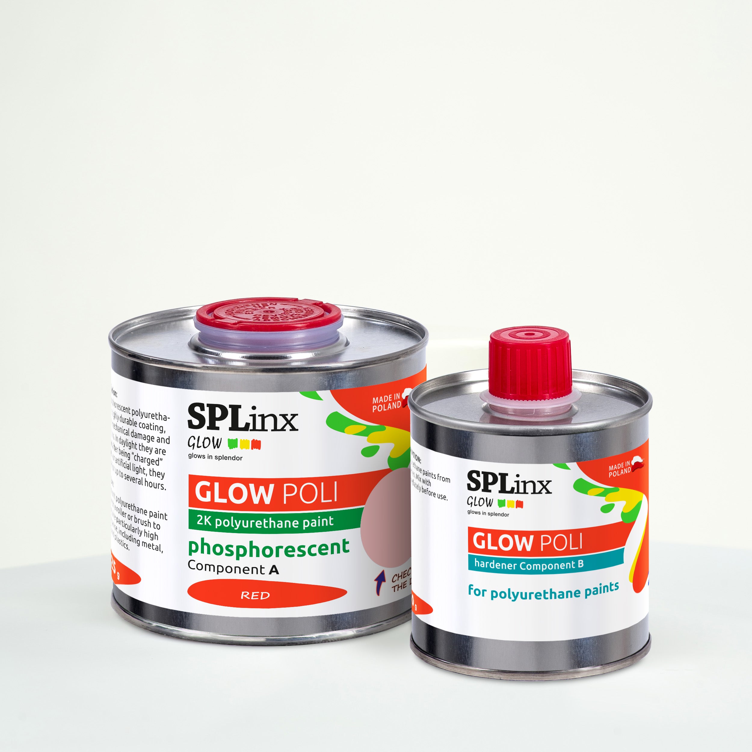 GLOW POLI Phosphorescent 2K polyurethane paint - SET - red
