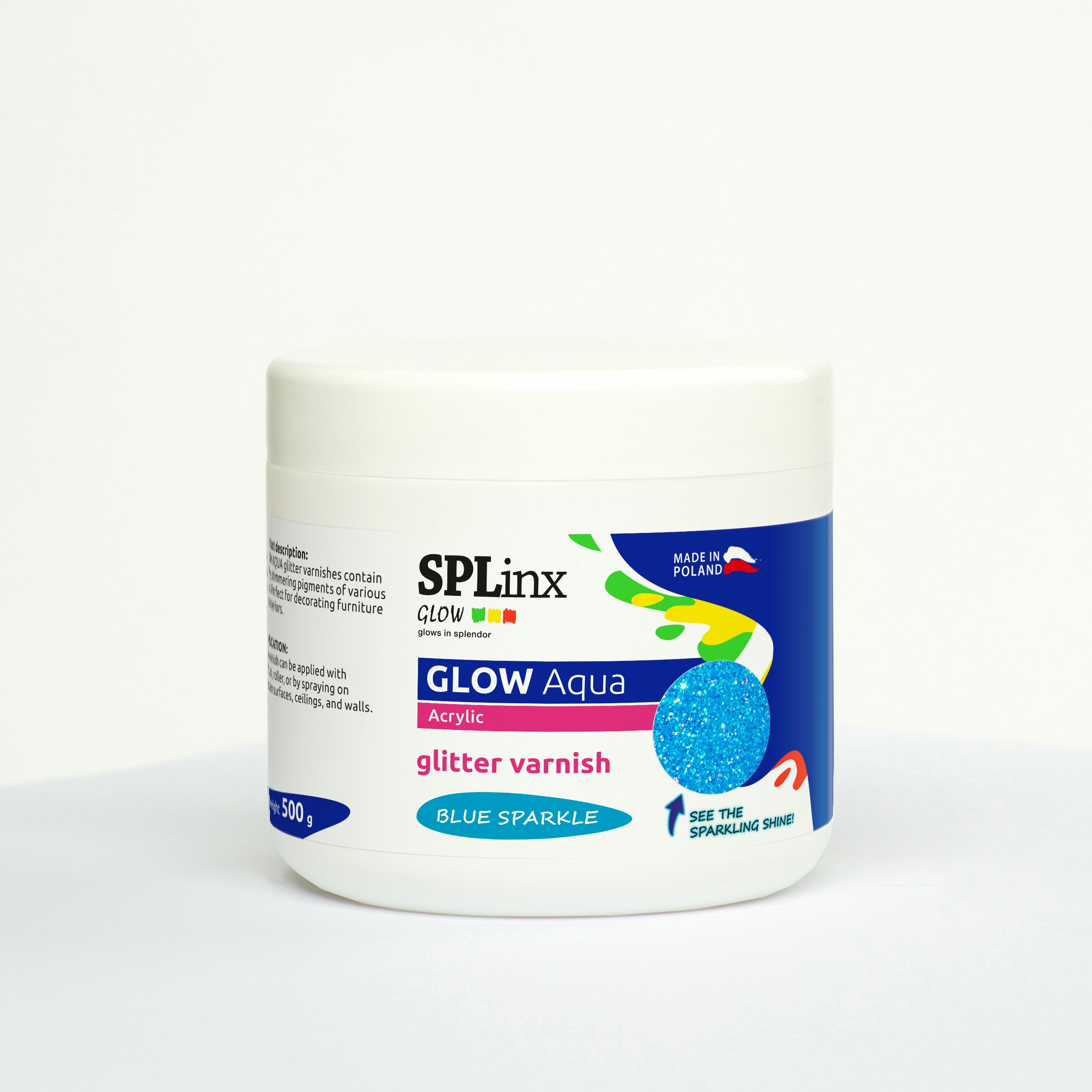 The glitter acrylic varnishes from the GLOW Aqua series contain thousands of fine, shimmering glitter flakes, thanks to which you can achieve a spectacular effect on various surfaces. Whether you paint single elements or entire surfaces, e.g. in the dining room, living room, or children's room, the unique and shiny finish of our varnishes will add an unmistakable character. You can also use the varnishes to paint wooden furniture, decorations, and interior accessories. There are many ideas for their use. The only limit is your imagination!