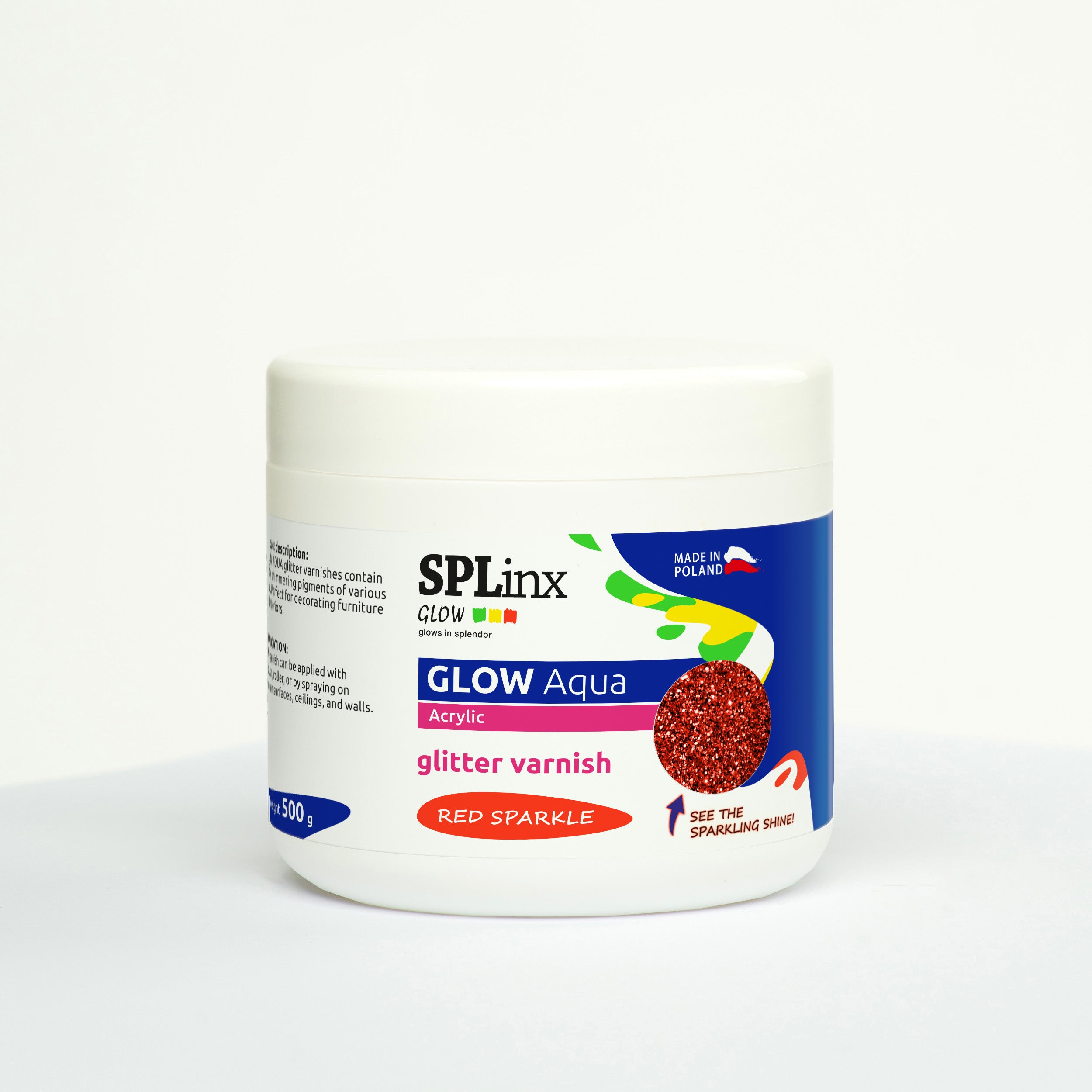 The glitter acrylic varnishes from the GLOW Aqua series contain thousands of fine, shimmering glitter flakes, thanks to which you can achieve a spectacular effect on various surfaces. Whether you paint single elements or entire surfaces, e.g. in the dining room, living room, or children's room, the unique and shiny finish of our varnishes will add an unmistakable character. You can also use the varnishes to paint wooden furniture, decorations, and interior accessories. There are many ideas for their use. The only limit is your imagination!